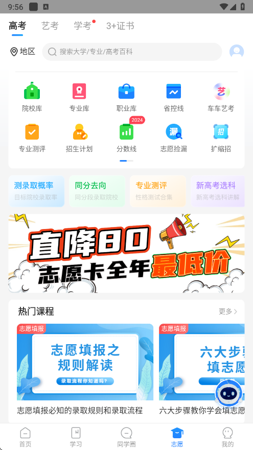 院校库 / 专业库 / 职业库:覆盖全国高校,汇集教育部 2500 多个专业、5 年多分数线,整合职业信息、就业岗位、招聘信息,提供热门专业推荐和职业前景分析。