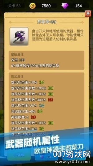 2、单机刷刷刷游戏超多不同的武器让你去使用,每一个的属性都是随机的;