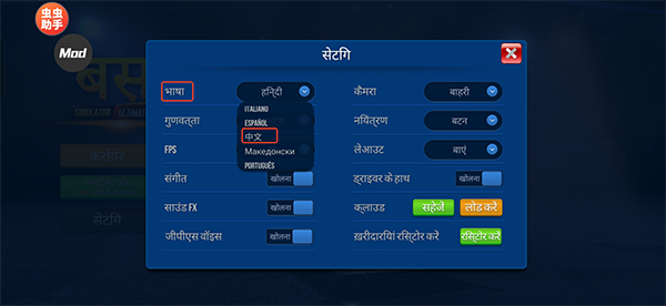 1、进入终极巴士模拟器印度版本1.0.4内我们需要先将语言修改为简体中文,这里选择第三个选项。