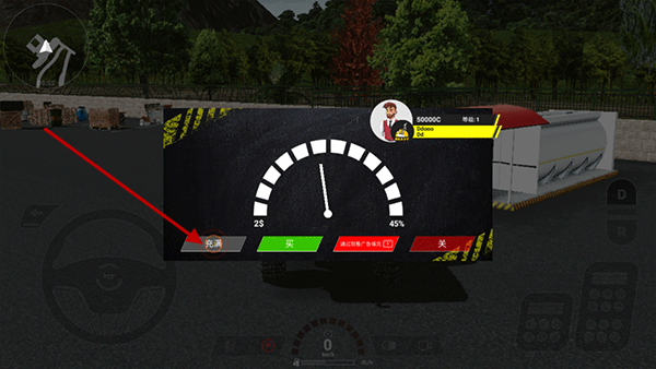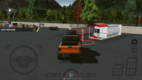4、在屏幕的左侧可以看到我们的任务,首先需要驾驶着卡车来到加油的地方。