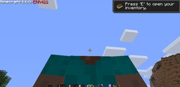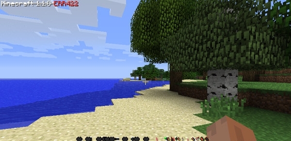 加载地图,生成世界。小编的出生地是在一片丛林与海洋的交界处。左上角的版本很是诡异:Minecraft 1.7.6 ERR422。后来小编才发觉1.X.X,后面两个数字是随机的。