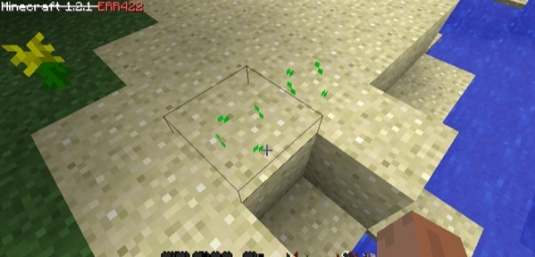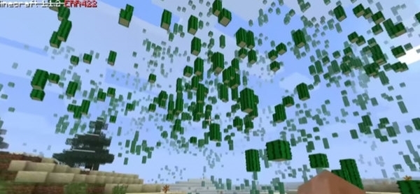 沙漠中可以看到浮空的仙人掌、晴天会打雷、撸方块会出现岩浆、拿在手上的石头放置在地上,它会随机变成其他方块、沼泽会出现浮空的睡莲、沙漠是浮空的仙人掌、植物会生成在空中等等。