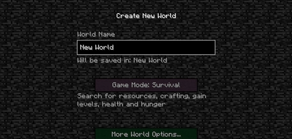 游戏很多灰色的按钮是不可交互的,只有Singleplayer,单人生存模式可以选择。我们把新世界以默认命名“New World”来创建。