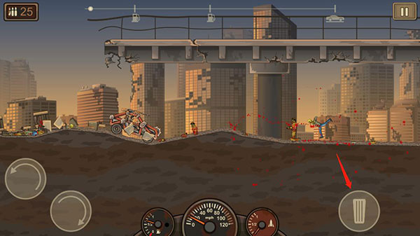 3、游戏使用按钮操作。在路上,我们可以控制汽车进行各种特技表演,不是为了耍酷,而是为了摆脱追赶的僵尸。