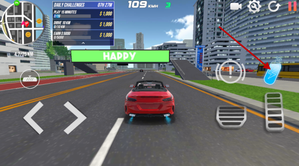 2、进入到游戏中后,我们可以点击左侧的按键来控制赛车的方向,右侧的按键分别是刹车和油门。