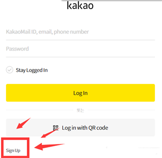 2、如果已经拥有了kakao帐号,则可以在弹出的登陆窗口直接登陆;如果没有kakao账号,则点击左下角的“Sign Up”注册新的帐号