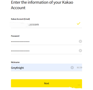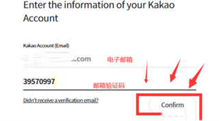 8、邮箱验证码验证成功后,我们就可以点击下一步按钮,就可以成功注册kakao帐号了,注册成功之后,我们就可以登陆游戏了