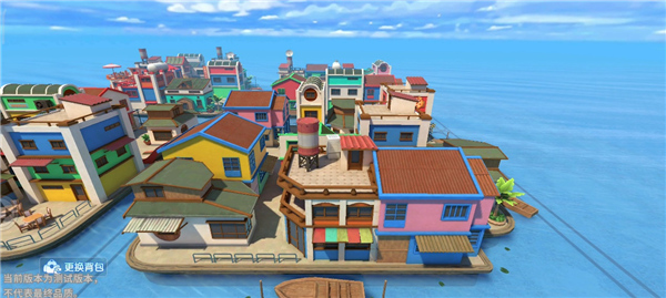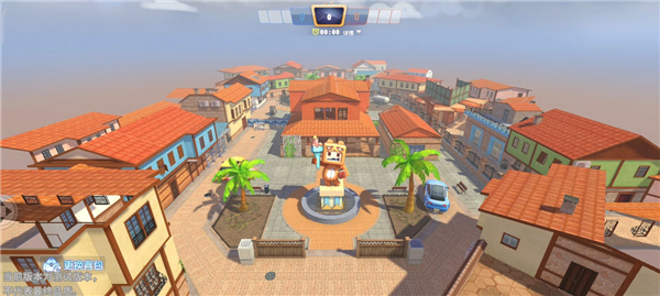 大家都知道,小丑风格的地图多表现明亮的橘色,所以中间四栋大房子呈现的主要色彩是橘色,房子中间有一个十字路口,大地图两侧是两条宽阔的街道。几棵椰树和一辆小车作为点缀,恰到好处。