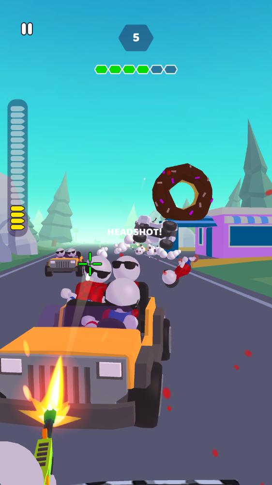 2、接着我们点击下方屏幕就可以射击了,击溃一辆汽车后,准心就会自动的移到下一量。