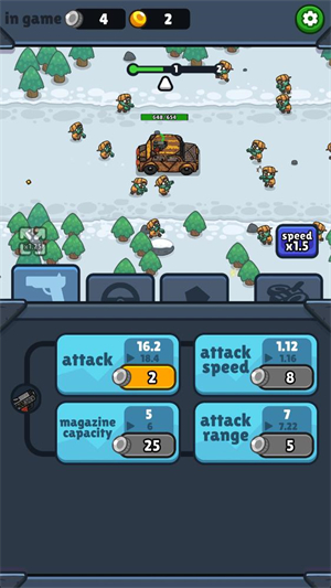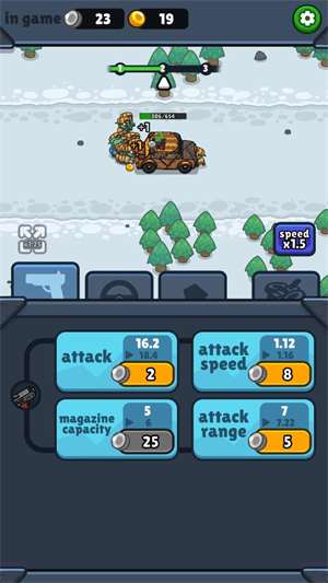 3、消耗金币可以升级你的车辆,可以提升武器威力或者增加血量。