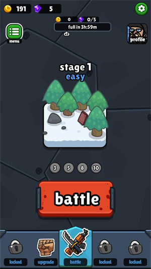 1、进入游戏后点击battle按钮开始闯关。