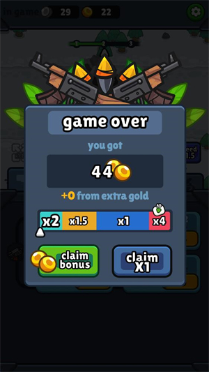 5、具有独特的空闲射击机制,即使玩家离线,也能获得收益和成长,上线后可以继续享受升级。