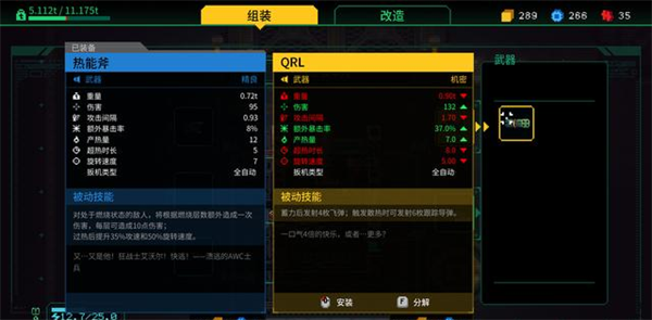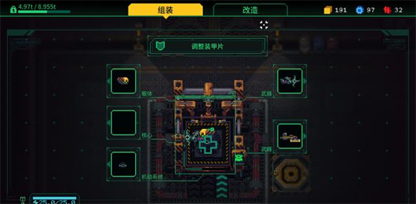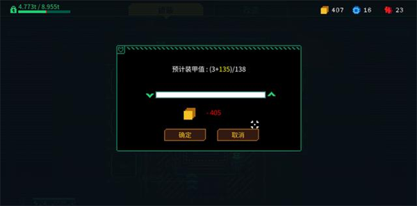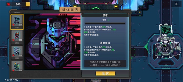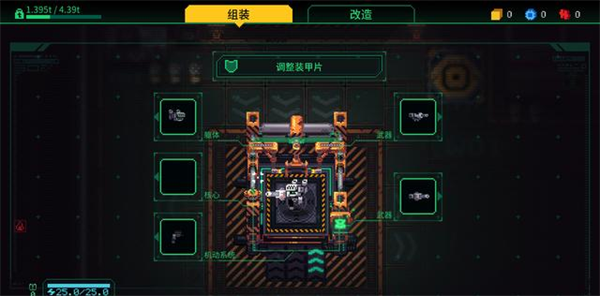 「商店」里玩家可以优先选择一些身体部件以及近战武器以保生存能力,不必强求远程武器。后期如果金币较多则可包圆装备然再分解获得蓝色素材,用来改造机甲。