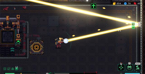 本作中主角通过「血量」「装甲片」「电力」等能源进行驱动,而不同能源之间也起到了不一样的效果。电力为可再生能源,用于助动,而其他两项则理解为护甲与生命值(初始不可再生),可在装配台通过消耗黄色素材进行兑换(后期黄色素材太多,建议挑战难度高的地图之前先补充装甲值)。