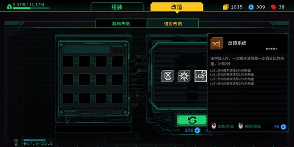 「进阶改造」中,玩家可以通过消耗蓝色素材随机获得5个不同的改造系统,然后再花费素材进行学习。上文中提到的「解锁改造」中解锁的功能,就可以在此随机获得。