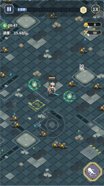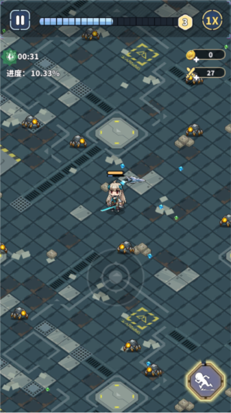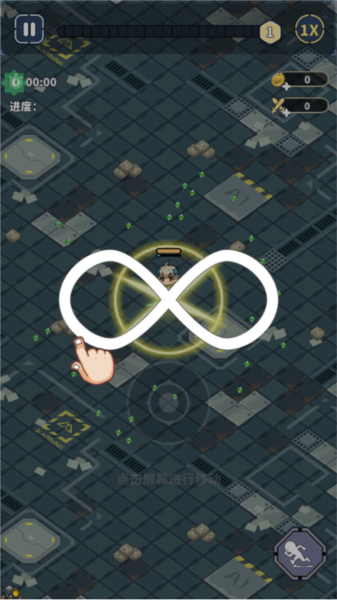 2、在这里滑动屏幕来控制角色的移动,击杀怪物赚取金币和经验值。